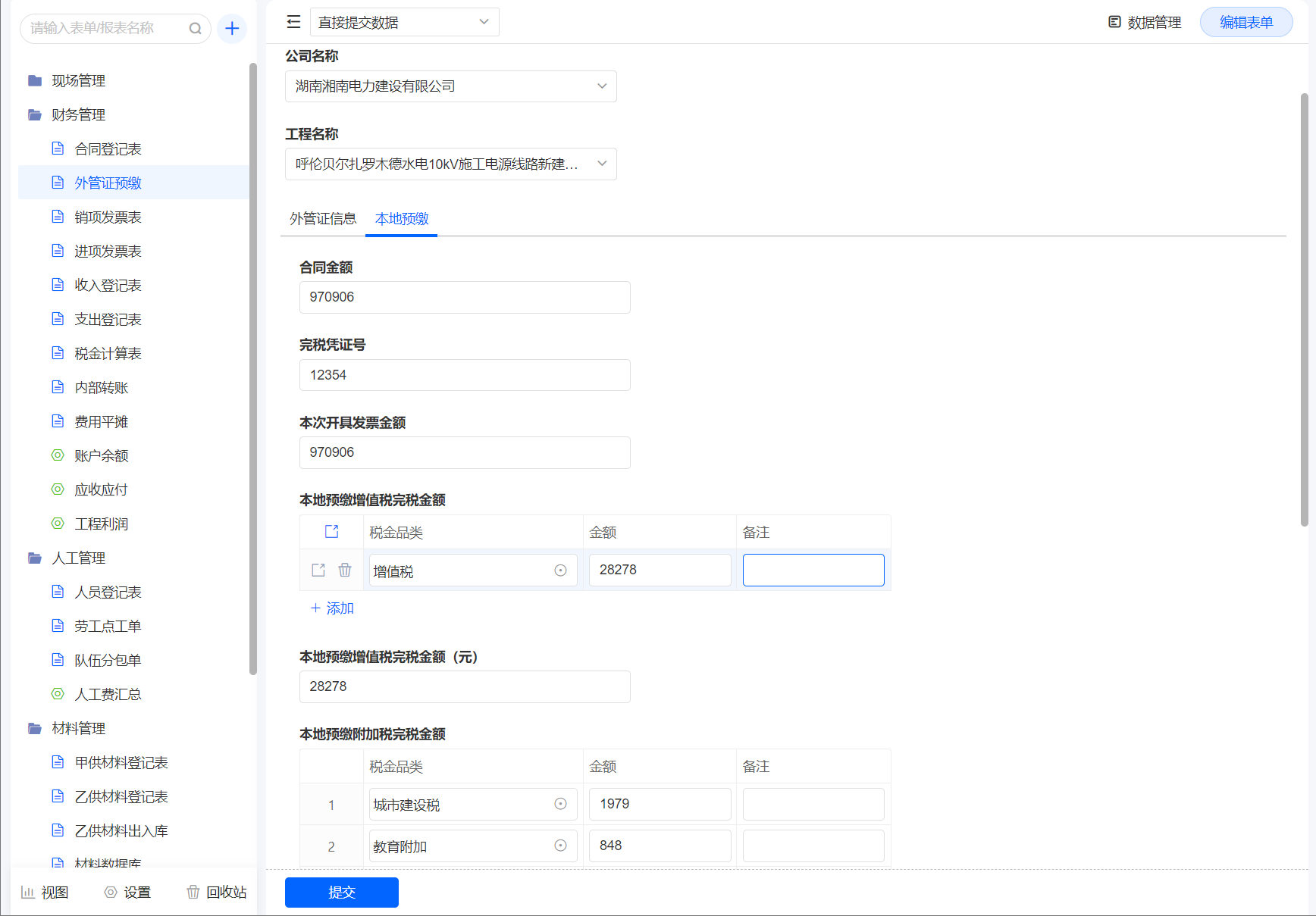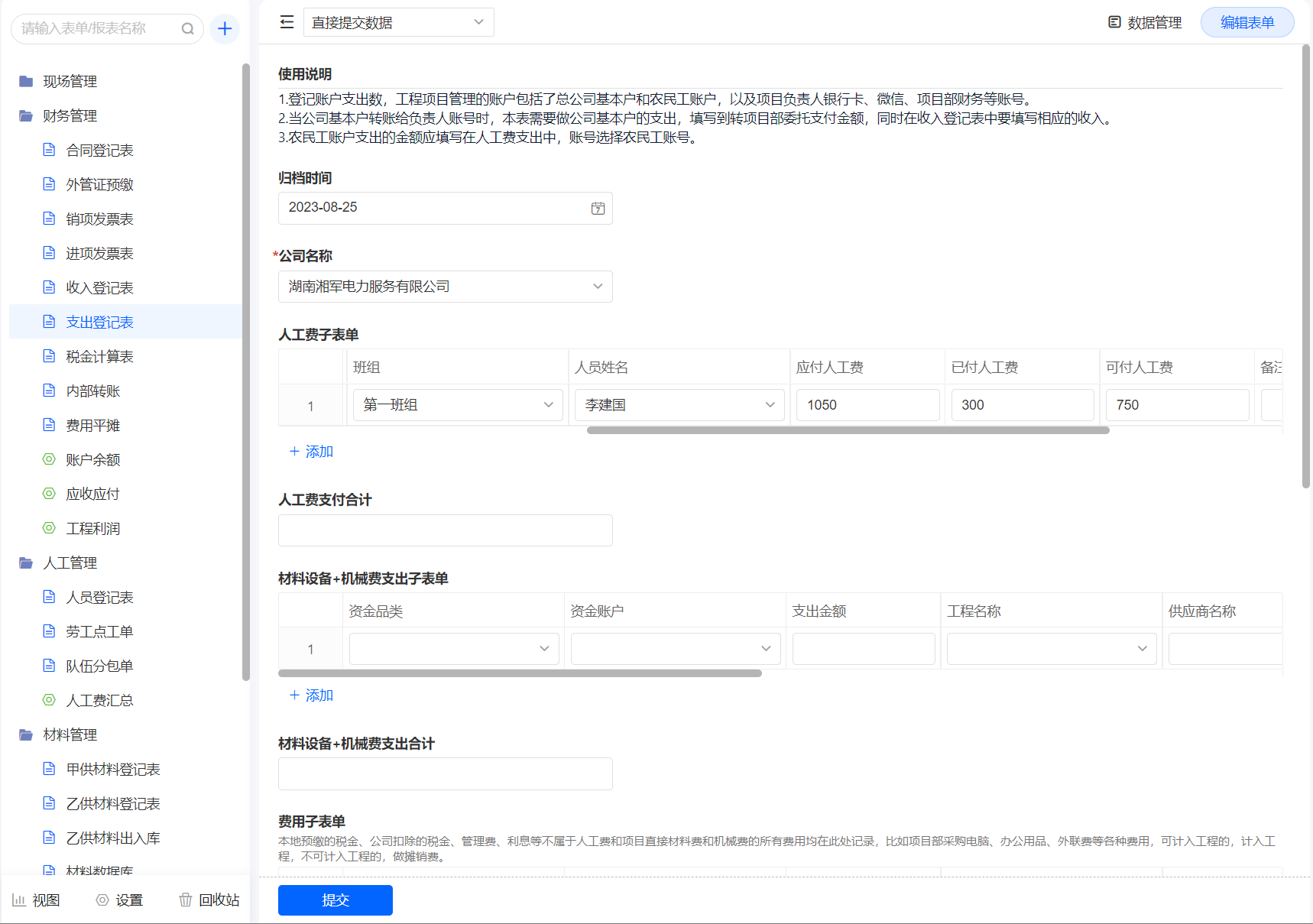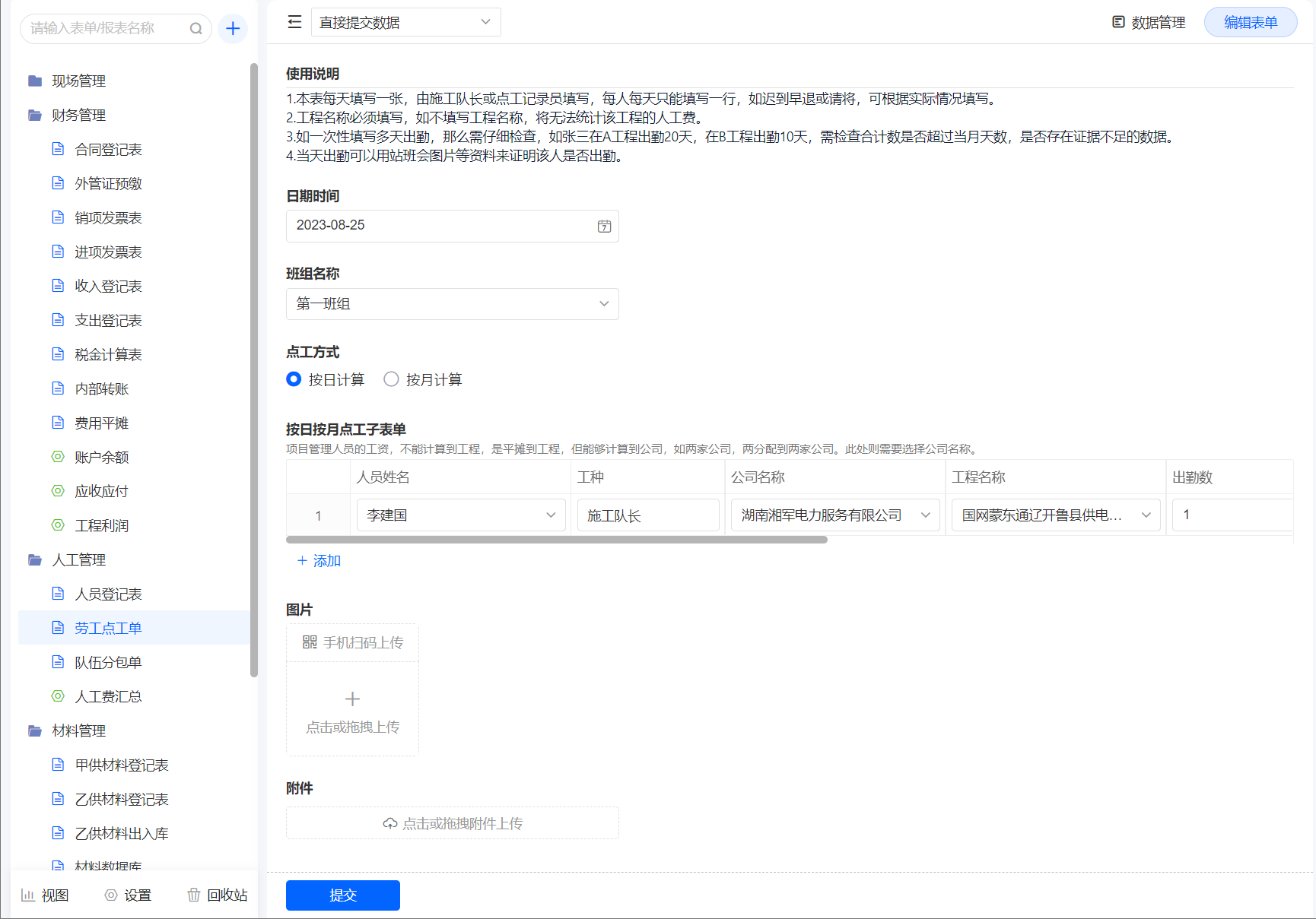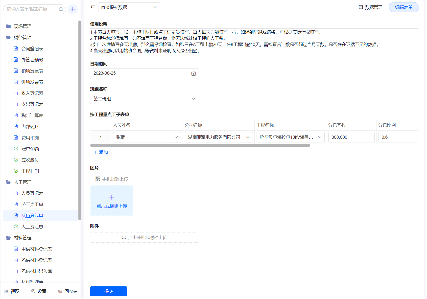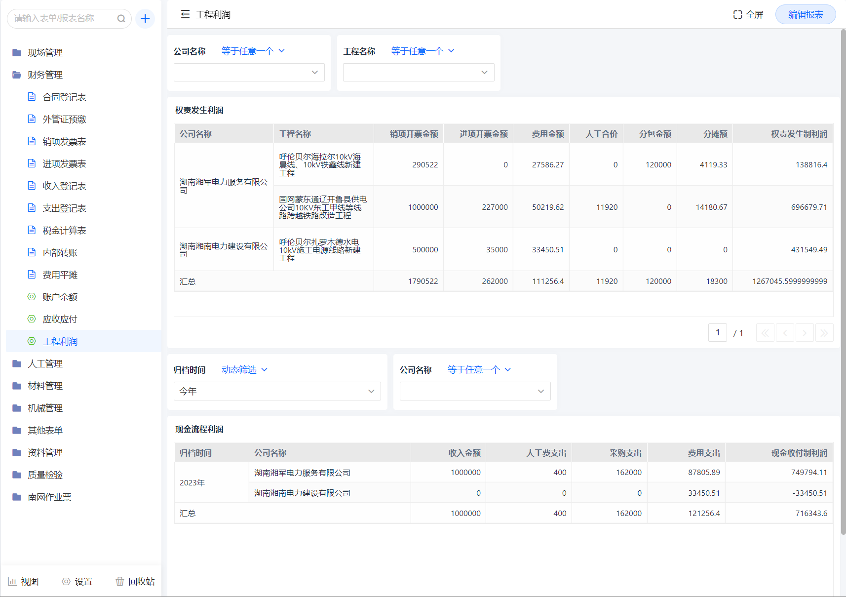 项目管理系统,适用于建筑业项目管理,本应用以电力工程为案例进行设计,主要由现场管理、财务管理、成本管理和资料管理四个大类,如有需要,请联系我们。
